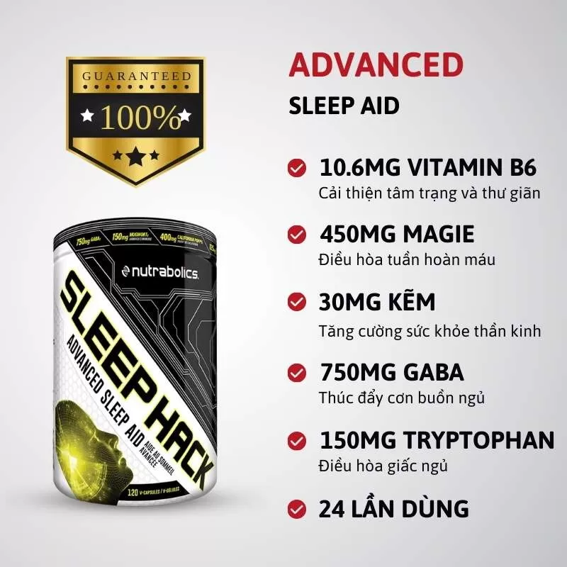 Nutrabolics Sleep Hack được thiết kế để giúp khắc phục chứng mất ngủ, ổn định giấc ngủ, giúp giấc ngủ sâu hơn, ngon giấc hơn.
